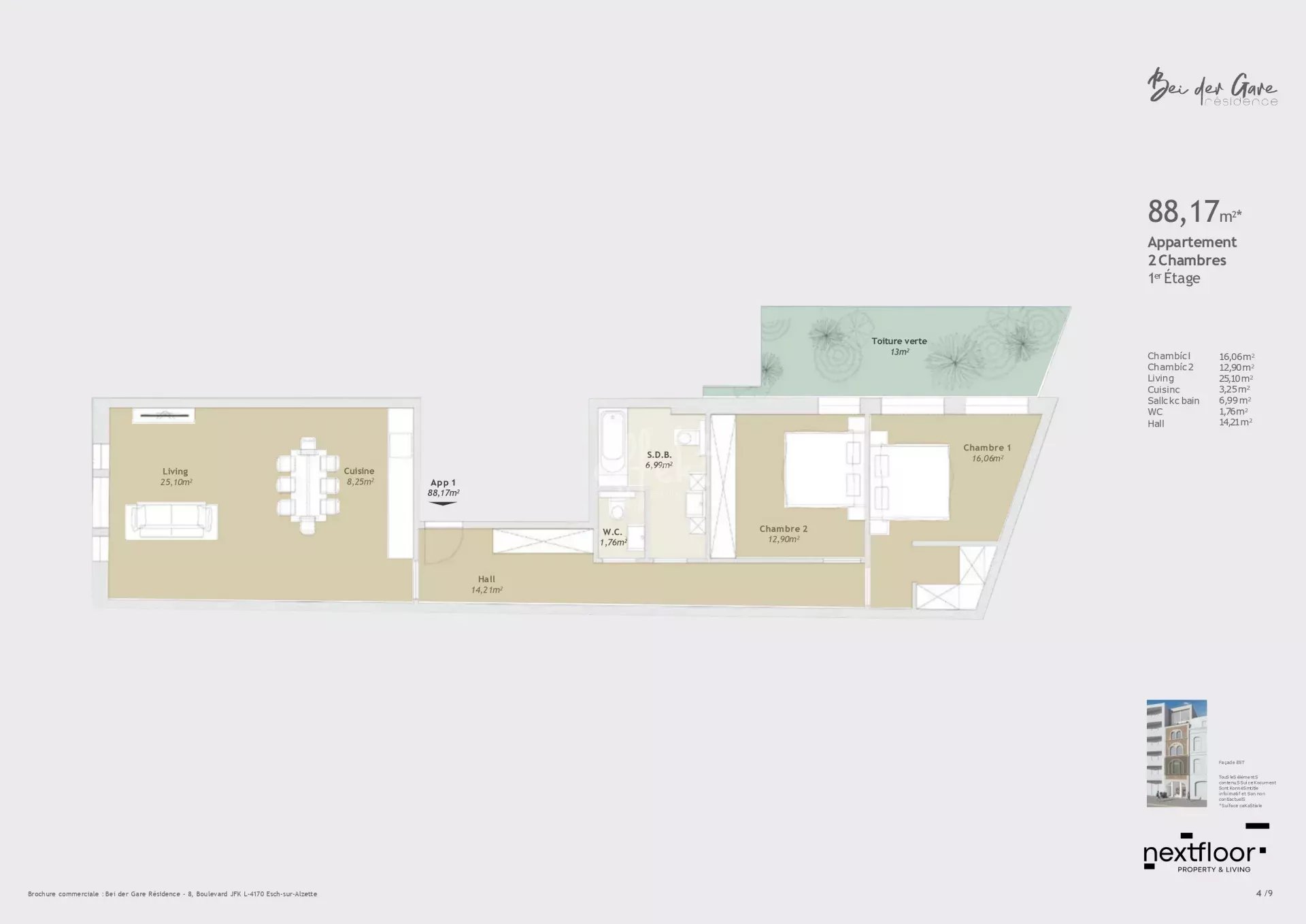 Die Wohnung 01 mit einer Fläche von 88 m2 setzt sich wie folgt zusammen: