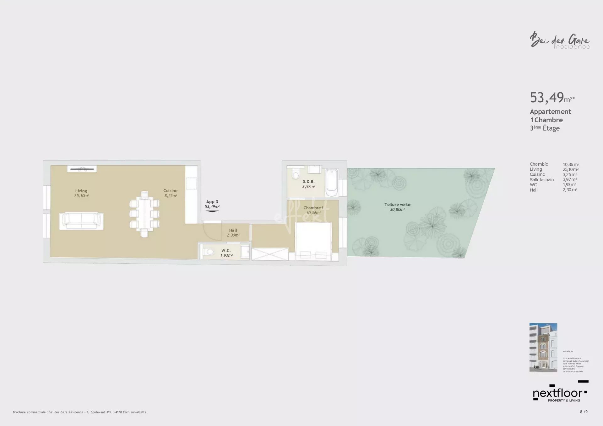 Die Wohnung 03 mit einer Fläche von 53 m2 setzt sich wie folgt zusammen: