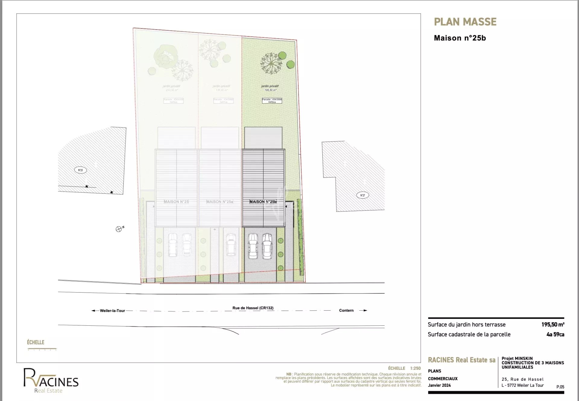 Located in Weiler-la-Tour, an idyllic village, Agence EFFEKT offers you an exclusive house (lot 3; house No. 25 b)) in future state of construction, with a living area of +/-182 m2 on a plot of 4.59 a, established on 3 levels.
