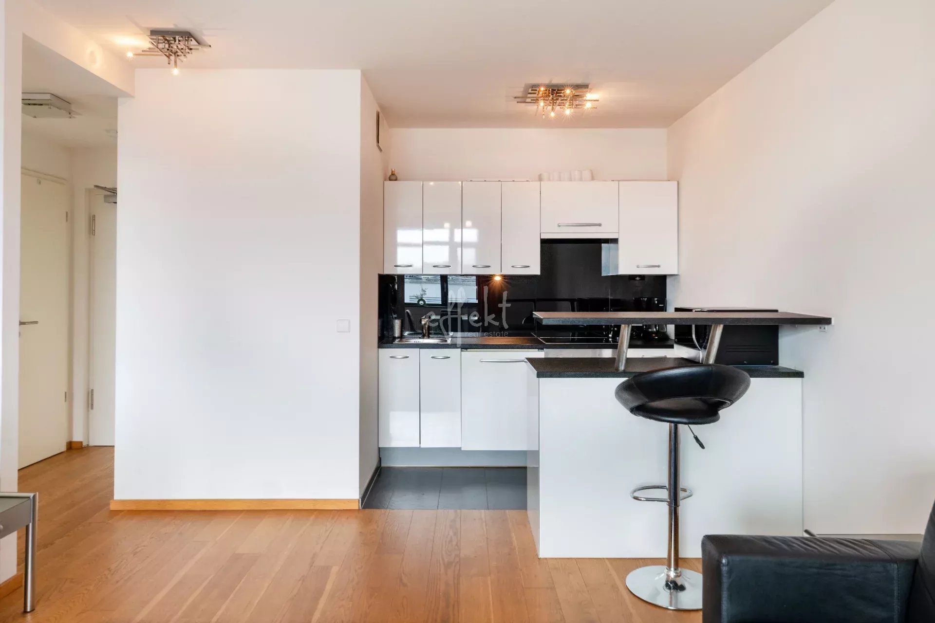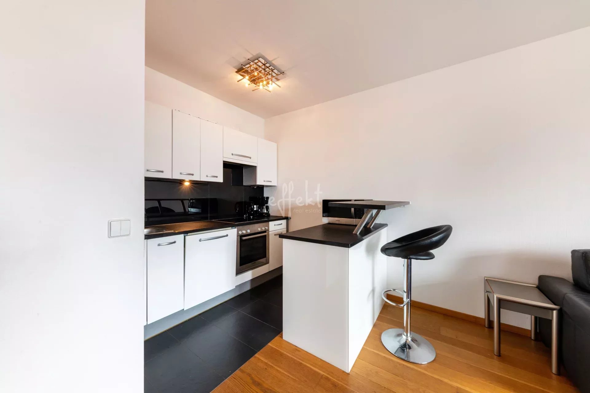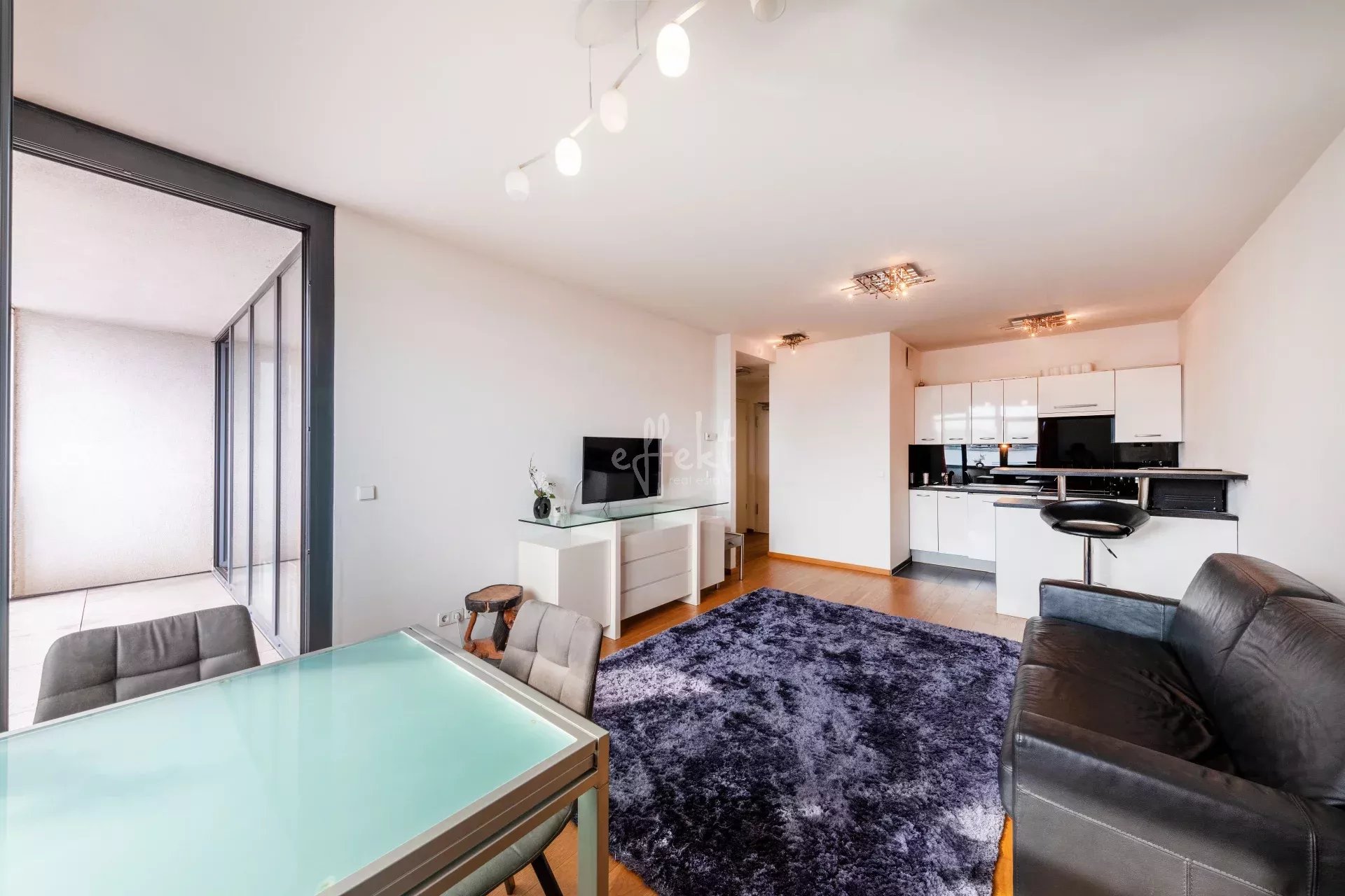 Bel appartement au quatrième étage, 1 chambre à coucher, avec salon/cuisine, WC séparé salle de bains avec baignoire, emplacement pour voiture et cave.
