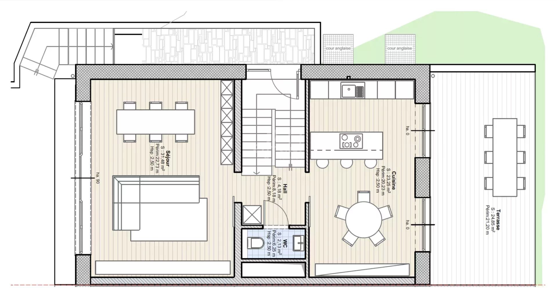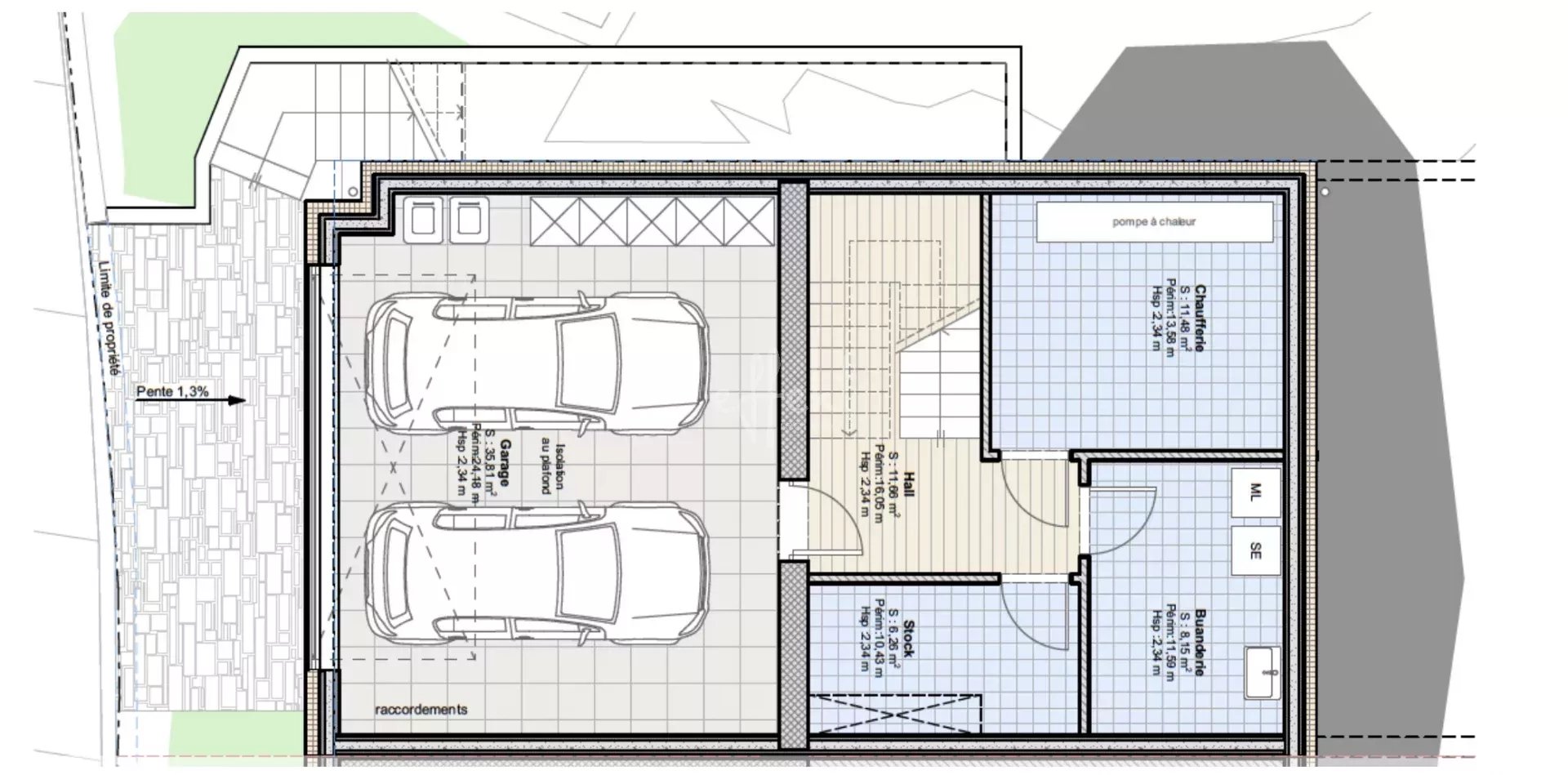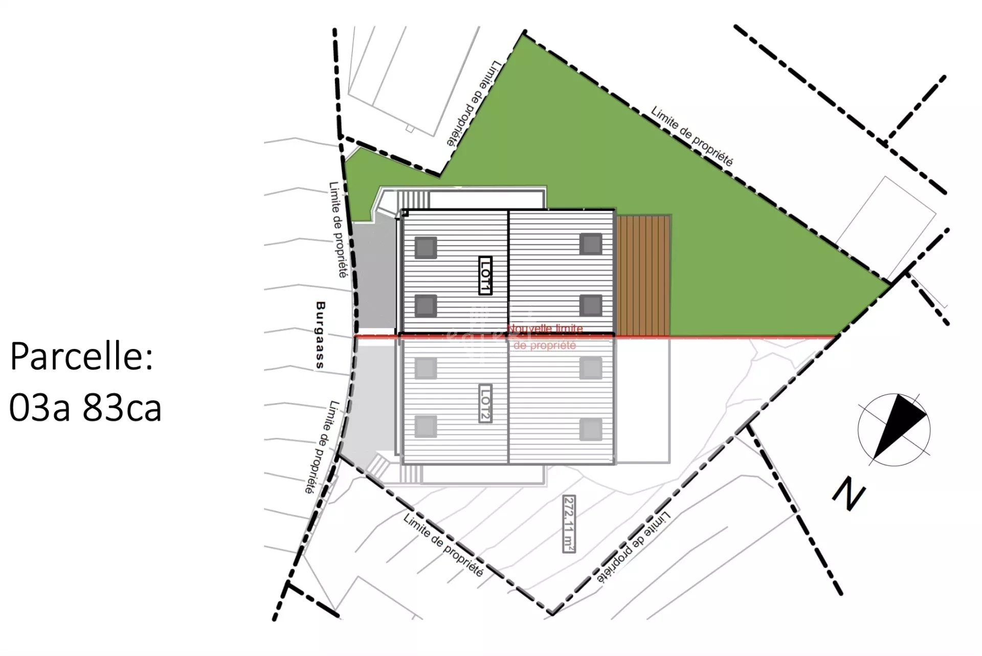 Terrain à vendre d'une surface de 3,38ares avec une autorisation à bâtir pour une maison (n.01) d'une surface totale de 193 m² (surface habitable de 136 m²) se compose comme suit :